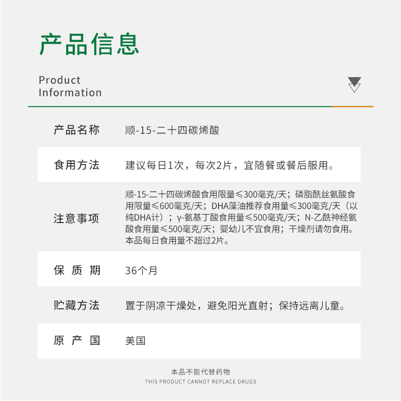 八大智能营养健脑因子,每片含顺-15-二十四碳烯酸150mg 天然健康来源,无添加