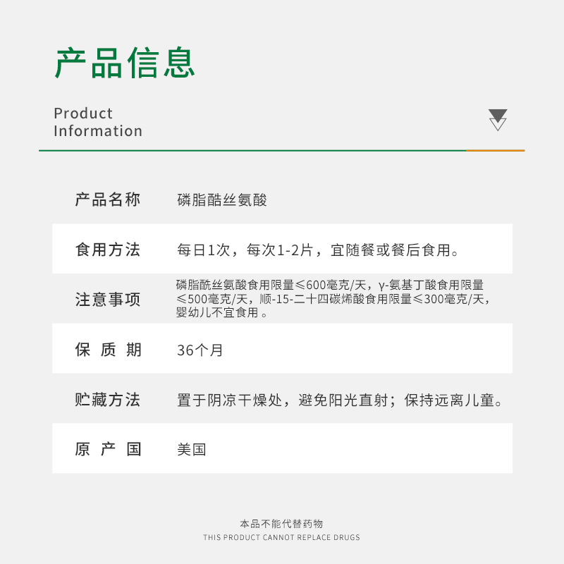 三大智能营养健脑因子,高含磷脂酰丝氨酸60mg天然健康来源,美国原装原瓶进口