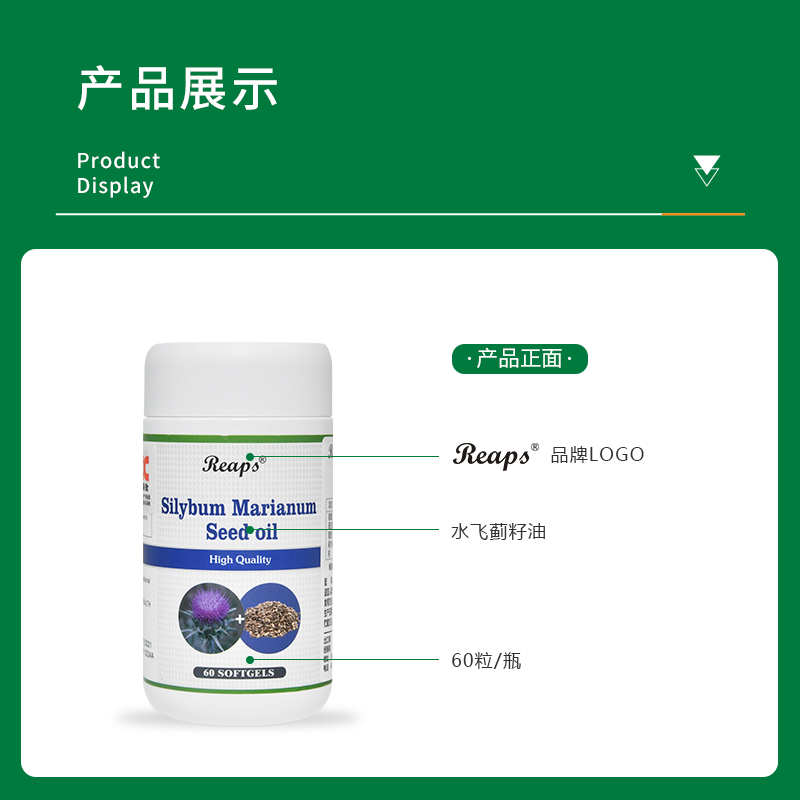 Reaps水飞蓟籽油凝胶糖果美国原瓶原装进口营养保健品植物萃取精华,每粒含水飞蓟籽油500mg保肝护肝,促进代谢面向全国招商,同时提供OEM贴牌代加工服务