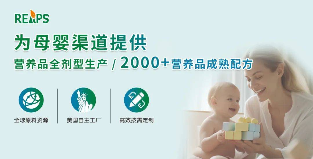 2024年,REAPS瑞普斯集团推出四大核心技术配方产品,继续为母婴渠道赋能。以全球原料资源、先进核心技术、资深科研团队、完善生产设备、全面剂型品类、成熟产品配方等多项优势,为母婴渠道提供营养品全剂型生产OEM服务。