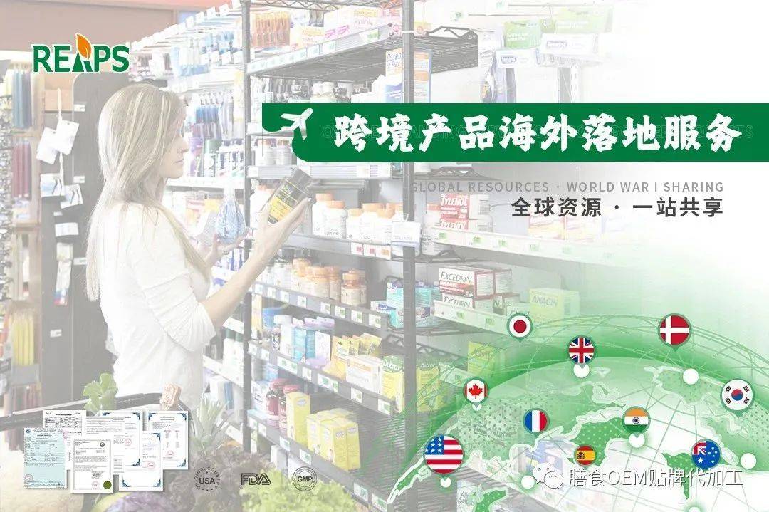 REAPS瑞普斯集团深耕大健康产业16年,搭建起全球膳食营养补充剂供应链体系,链接全球大健康优质资源,为大健康产业提供全球供应链解决方案及品牌运营服务,提供全球20多个国家的膳食营养补充剂OEM/ODM服务,包括美国、韩国、德国、日本、新西兰、法国、瑞典、瑞士、荷兰、丹麦、加拿大、澳大利亚等多个国家。