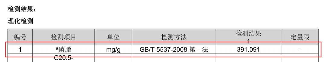 1、磷脂含量检测结果: